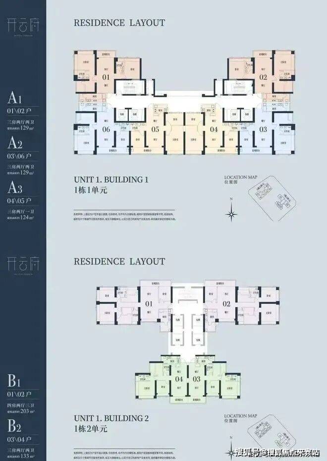 1栋一单元A1、A2户型:面积约为129㎡