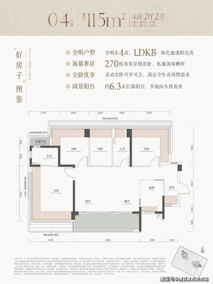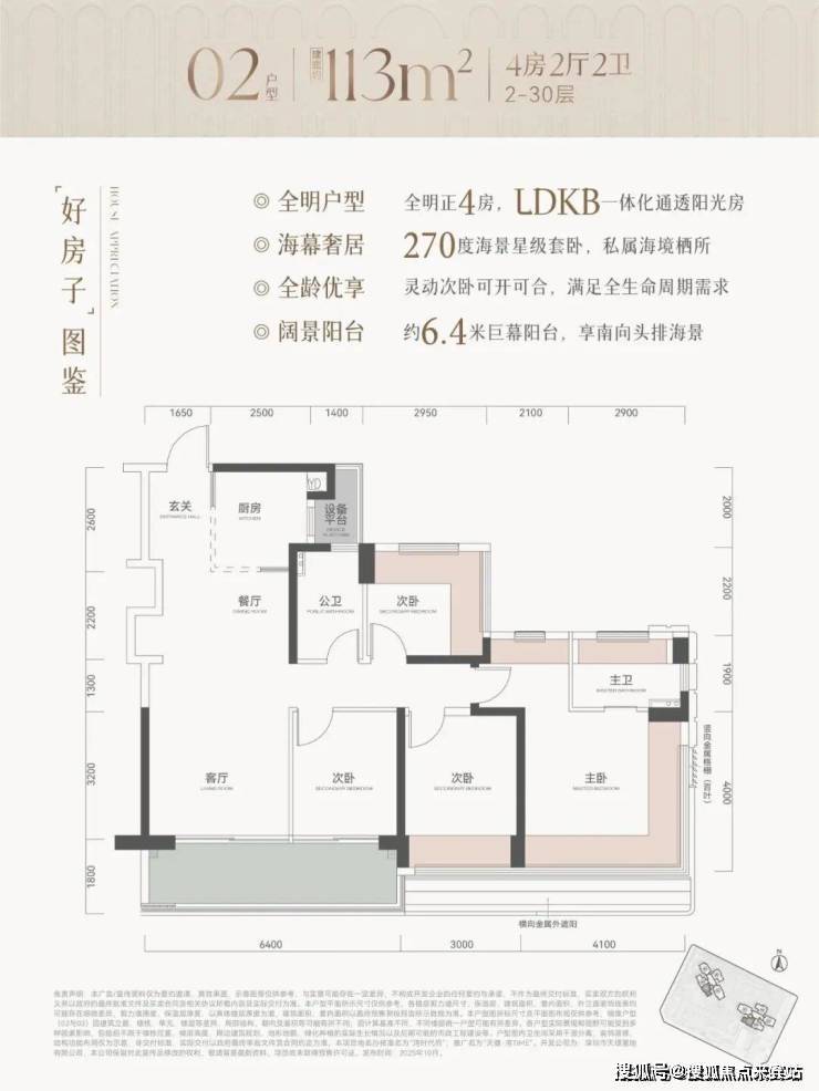 约80%南向全明大面宽户型,全屋环绕式采光面,盛满一室阳光;约6.3-6.8m阔景大阳台,晨间瑜伽、午茶瞰海、暮色小酌,海幕星空自成生活背景;海景星级套卧,270°环幕自在观景,享受头排海景盛宴。