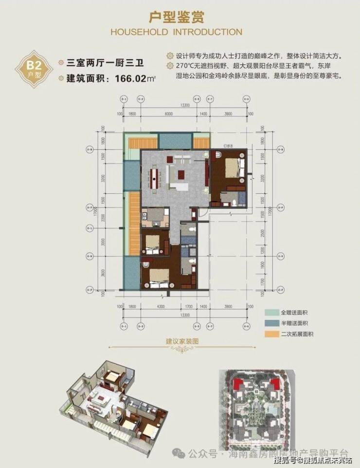 166.02㎡三房三卫(赠送31.04㎡)