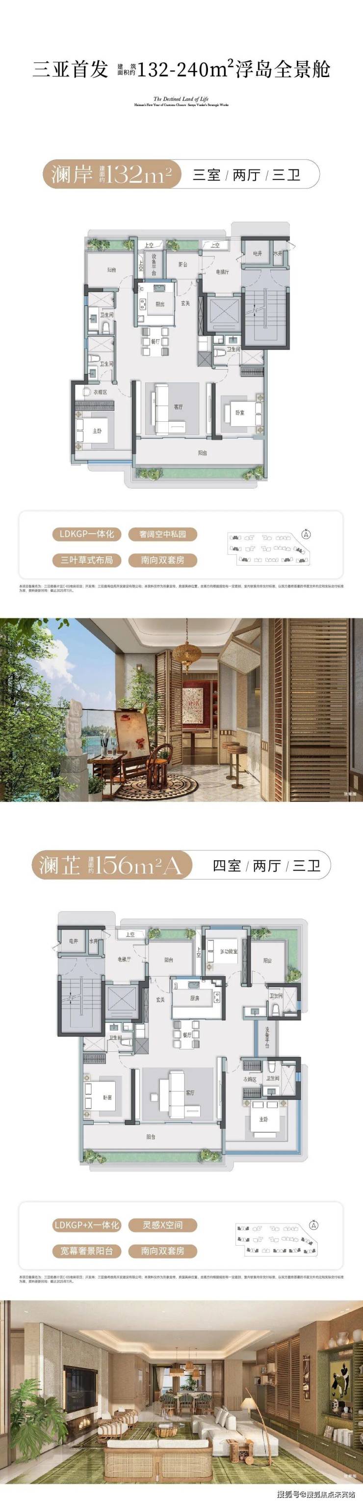 项目是三亚首发类四代宅的创新户型,在产品设计有不少亮点,比如三阳台设计,入户庭院花园打造;再比如全景舱设计,做到U型三面采光,比传统L型多一个景观面。