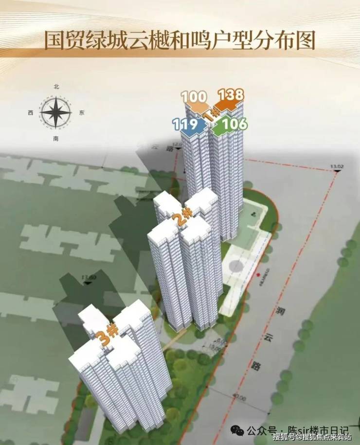 云樾和鸣是白云新城首个新规盘,3栋住宅都是2梯4户,做了四种户型,分别是约100㎡、106㎡、119㎡、138㎡四个户型