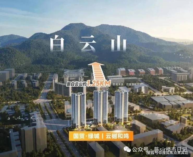 云樾和鸣项目东侧是白云山,直线距离大概1.25公里。都非超高层,3栋楼都是32层高,大概是22楼以上位置东南向高层能看白云山
