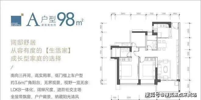 98㎡的3房2厅2卫,设计的是经典竖厅格局,LDKB一体化设计,客厅3.6米开间,三开间朝南,动静分区,3个卧室分别做到了主卧13.69㎡/次卧11.62㎡/次卧5.76㎡(包含墙体飘窗),都不用搭配飘窗做床,L型厨房,卫生间干湿分离,得房率约:89%(包含赠送),西南、东南或正南朝