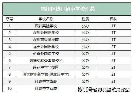 首先从福田讲起, 福田区是非常有代表性的,光是 1T名校就占了三所,而且2T名校数量也占各区之首。