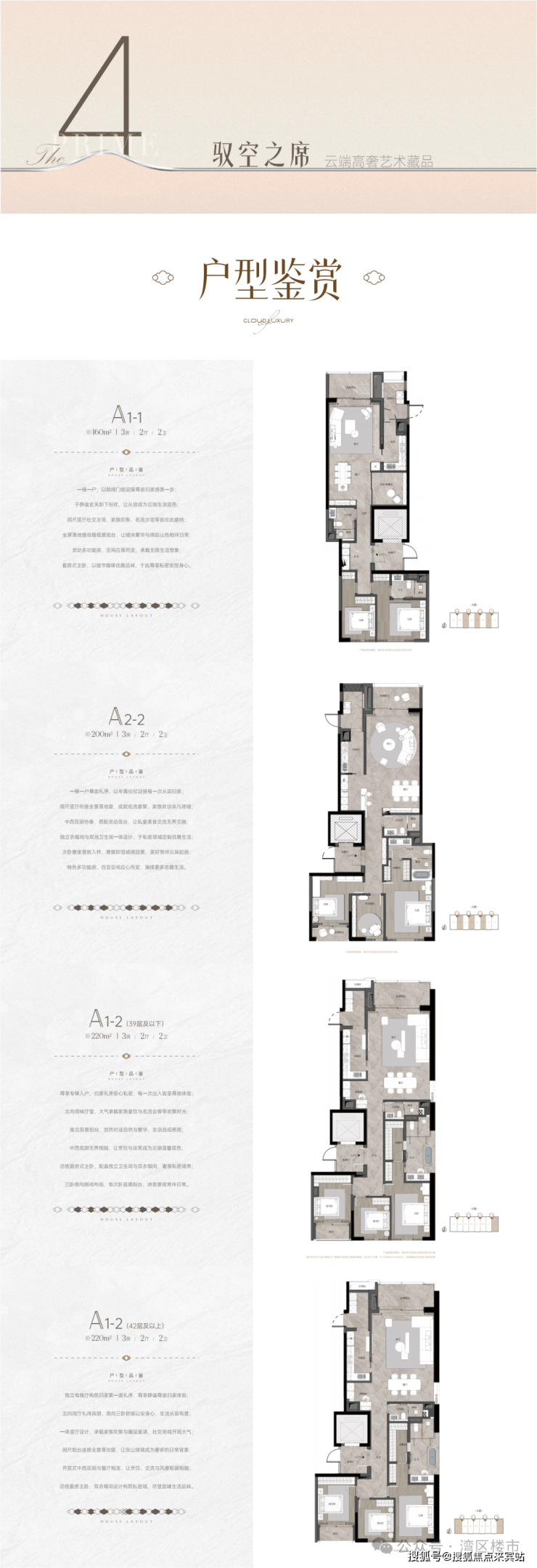 A座:建筑面积约160-220㎡2-3房(南北通透,专梯入户)