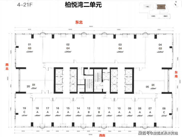 分区:5-18层低区;19-31层中区;32-42层中高区;43-54层高区