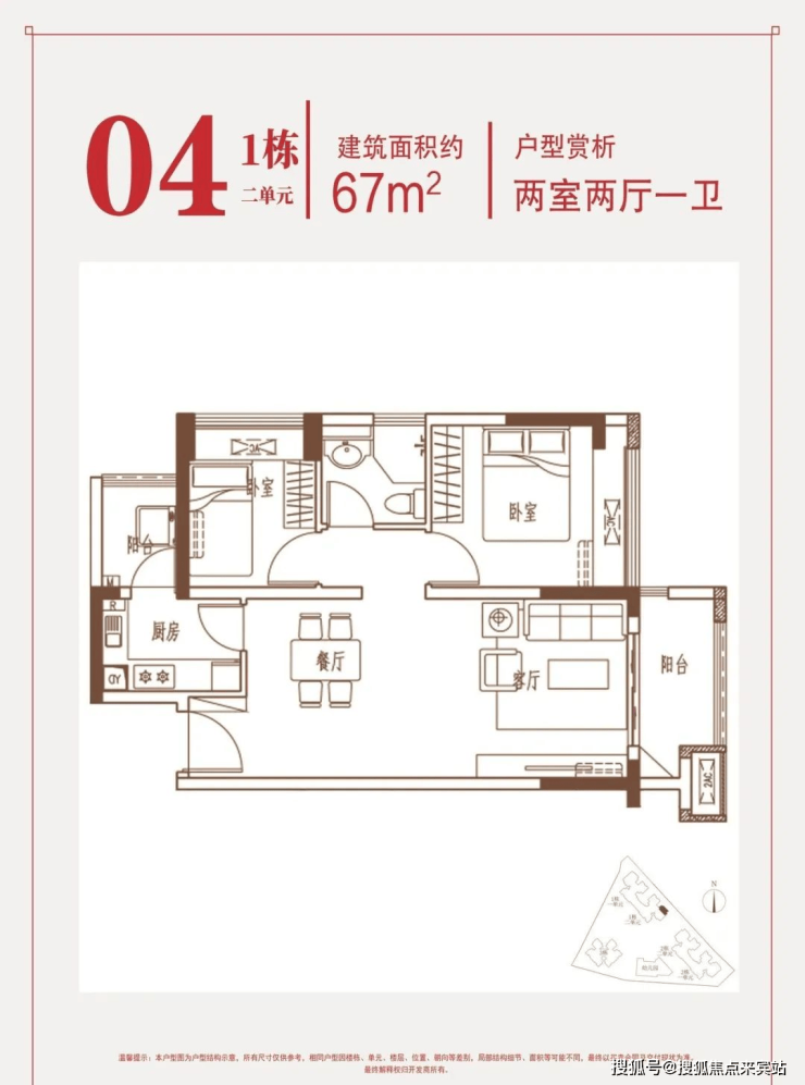 💎约67㎡两房:东南朝向,片区内唯一在售2房。