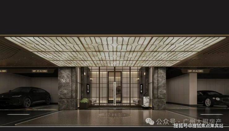 鎏光门庭入户大堂,采用豪宅海派手法设计,参考亚洲瑰丽酒店风格,打造“一步一景 一堂三景”的星级酒店式归家礼遇;材质上采用定制双色石材、巴西铂金钻奢石,并植入百年非遗西关手打铜工艺,彰显高级质感与格调。