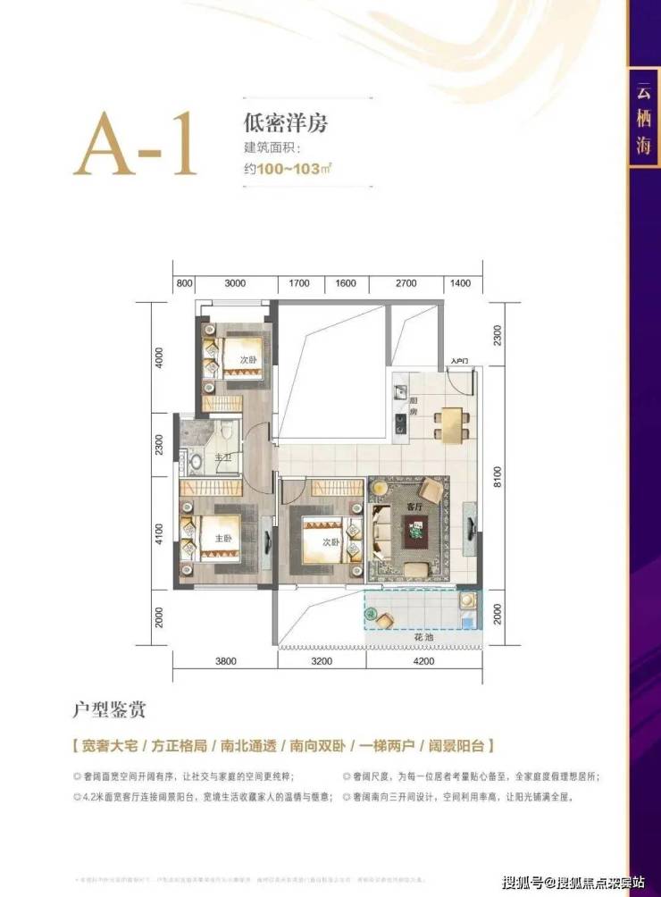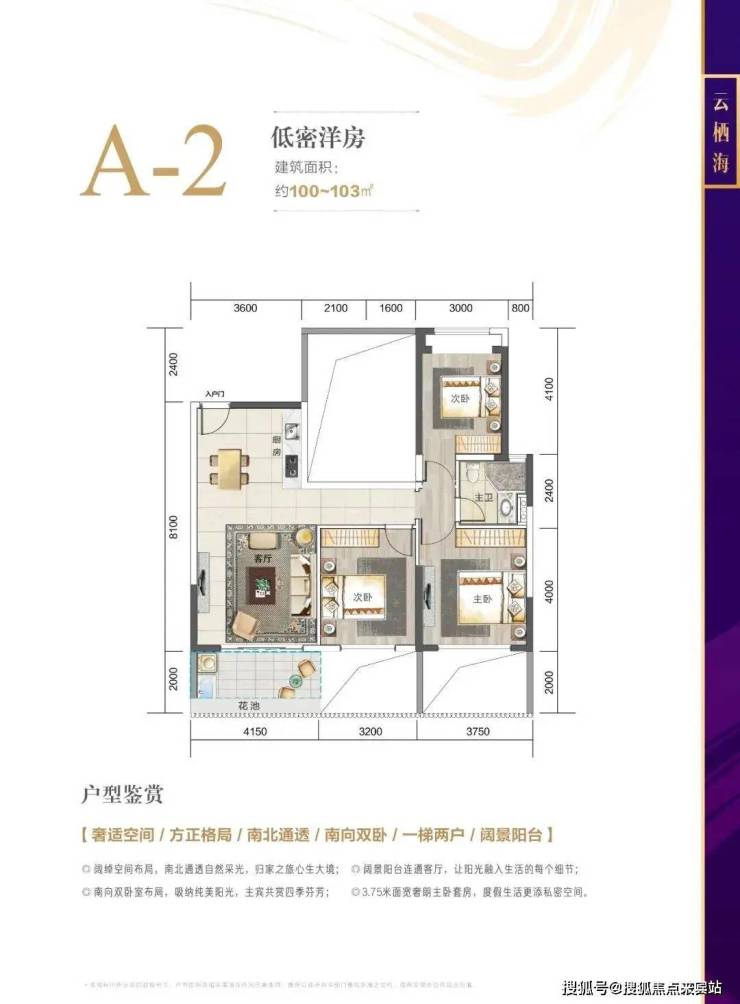 一梯两户,南北通透,阳光清风入户无拘束;双卧室朝南设计,4.2米面宽客厅连接阔景阳台,三面阳光环绕,生活乐趣自由延伸。