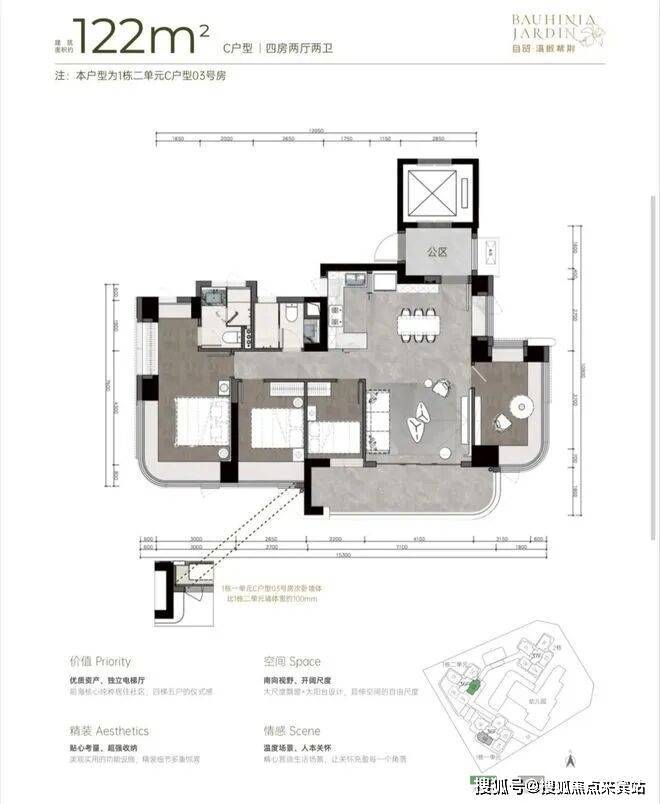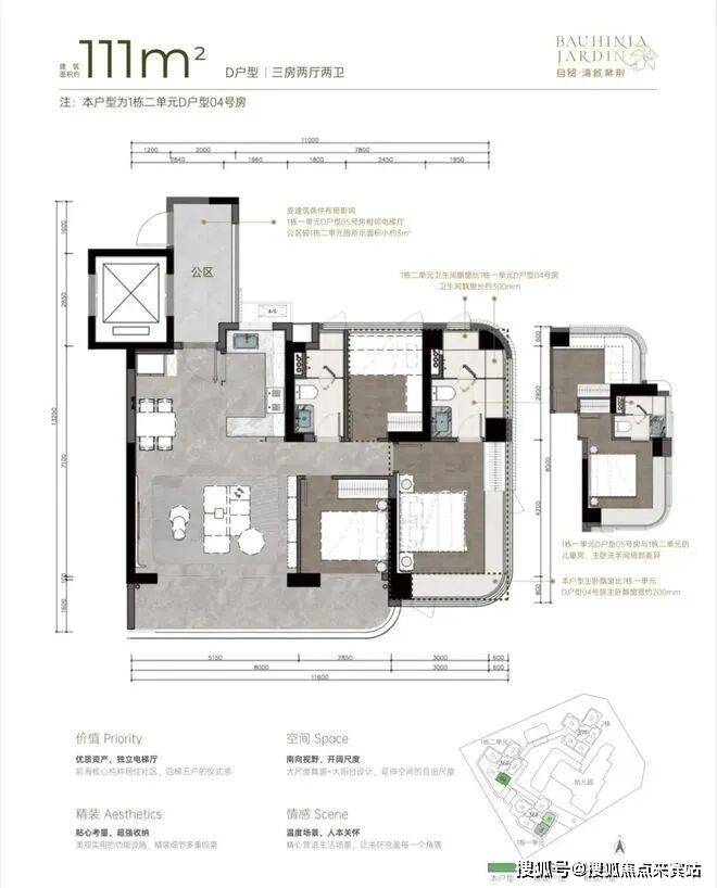 户型:新规设计、高使用率,规划主力为3-4房产品。