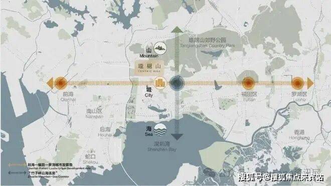 ①中心区域:深圳山海城中轴,左手香蜜湖、右手华侨城,六大总部基地环伺