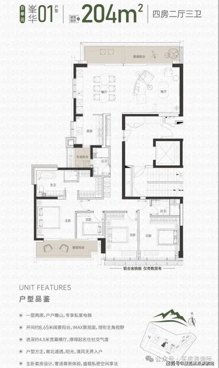 亮点二:一层两席,户户揽山,专享私家电梯入户,独享尊贵品质生活