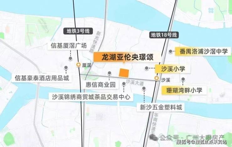 这个项目离沙溪地铁站大概600到700米,坐18号线1站到万博,2站到琶洲,3站就到珠江新城了。
