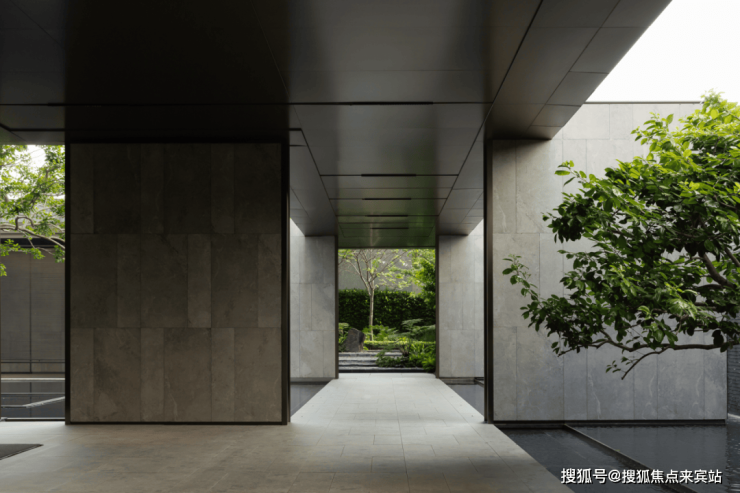 高低错落的铁冬青形态古雅别致,结合中央水景形成整体空间的仪式感,建立静谧的空间氛围。