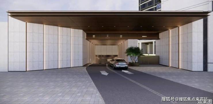 64m大尺寸超奢礼仪门头营造有识别性、开放性的门头界面,通过入口水景和点景造型松提升昭示性及领域感。