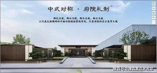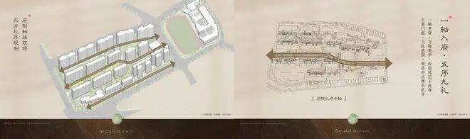 【板式楼栋】2.93低密府院大宅,一字板式楼栋布局,户户朝南,风光俱佳。一轴入府,以礼制中轴对称规制院落布局,尽显府院的东方美学