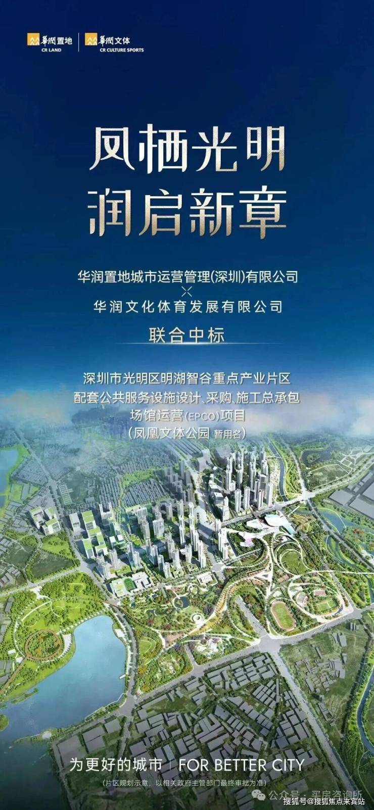 凤凰文体公园选址于光明区凤凰街道轨道13号线车辆段片区,地处光明凤凰城核心腹地,也是光明“旗舰大盘”润宏城所在片区。
