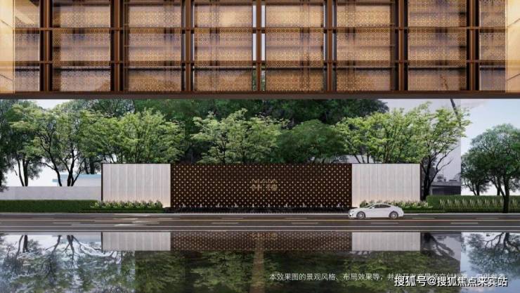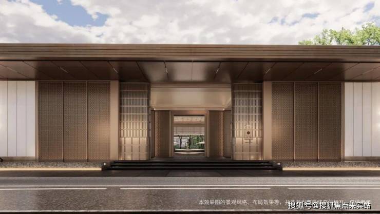 项目主门楼顶部,恰似古代帝王出行时所用的华盖,像是华盖展开的华丽褶皱,以流畅而富有韵律的线条,勾勒出一个大气磅礴又非常显贵的 “华盖顶”。