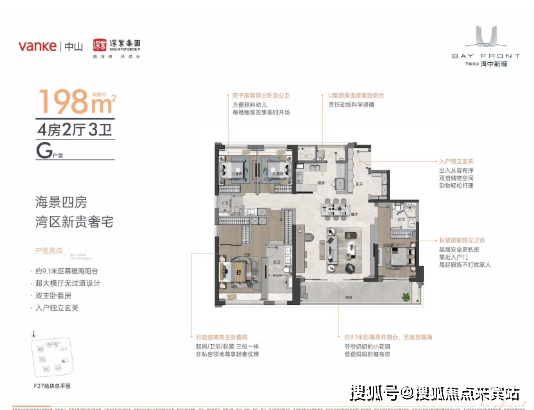 万科深业湾中新城在马鞍岛上,不管是地理位置,自身配套,还是公建配套,都是非常拔尖,马鞍岛超高层建筑“未来之门,像整个马鞍岛的地标了,目前唯一对望前海的滨海综合体,对望前海繁华都市,俯瞰一线海景,湾中新城开盘一路畅销!项目位于翠亨新区马鞍岛南部码头片区,土地面积约1003亩,计容面积约155.34万㎡,将通过综合开发打造成集口岸、会展、文旅、商业、酒店、社区等产业与商住功能于一体的大型口岸商业综合体,预计总投资规模约270亿元。本项目计划建成标志性双塔形式超高层建筑“未来之门”、会展中心、联检大楼、兼具文旅和商业特色的岭南风情水街、文化设施、小学、高端公寓及大型住宅区,并将引进上市公司、五星级酒店等。