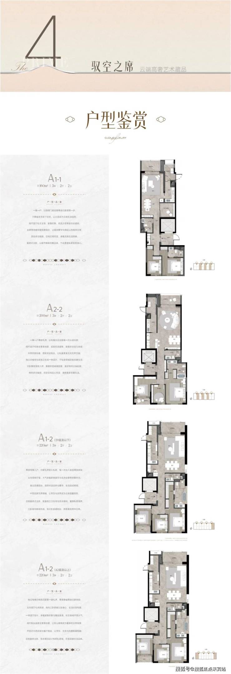 A座:建筑面积约160-220㎡2-3房(南北通透,专梯入户)