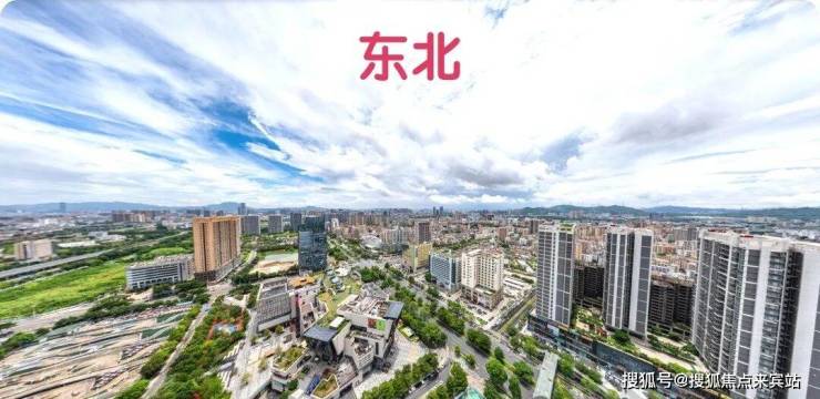 东北:看松岗中心板块方向,朝小区内部,看花园和泳池,受自身2-3栋影响几乎没有视野可言,它最大卖点就是花园景观相对较好。