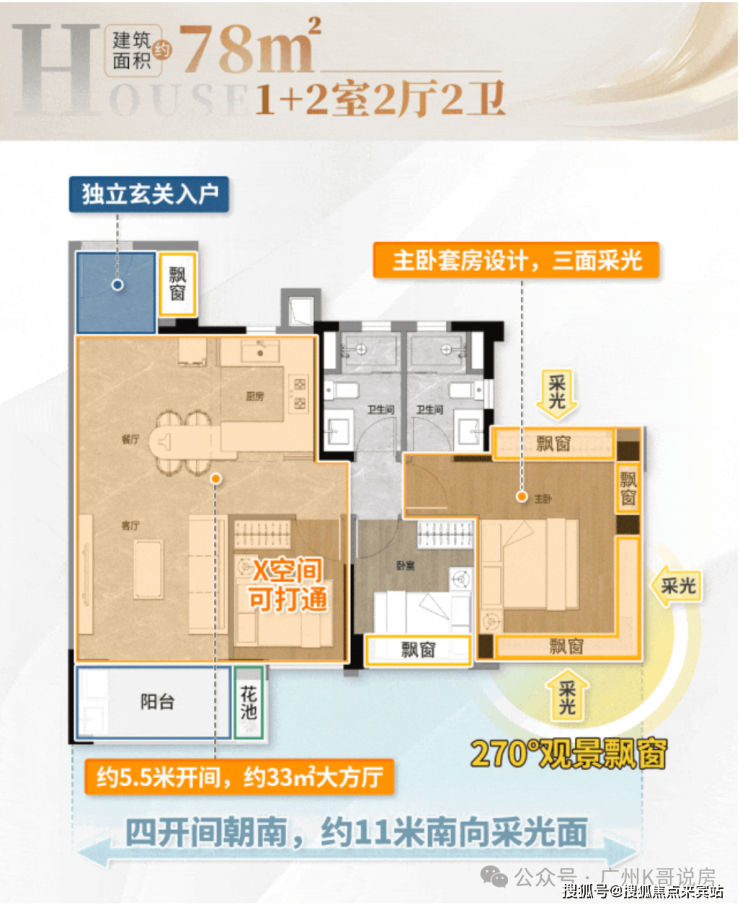 ①四开间朝南,超11米南向采光面