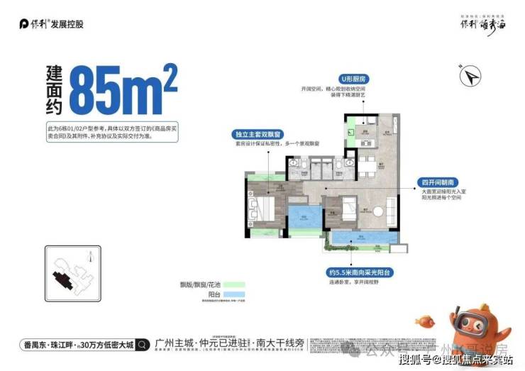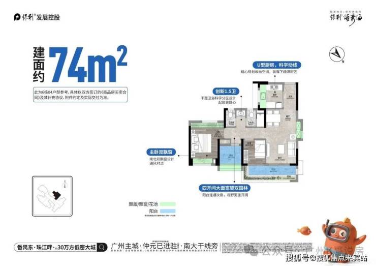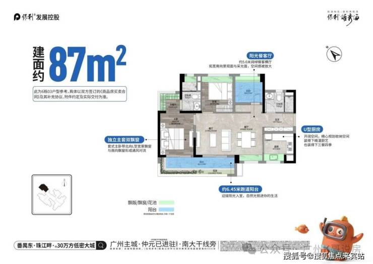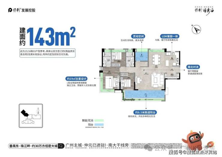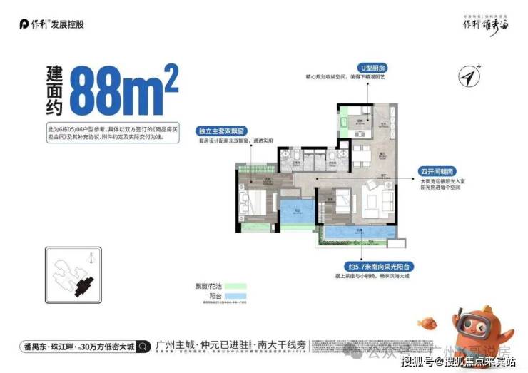 户型实用率高,主推 63-170㎡二至四房,新规下最高实用率达 107%,总价门槛友好,为番禺刚需高确定性优选。