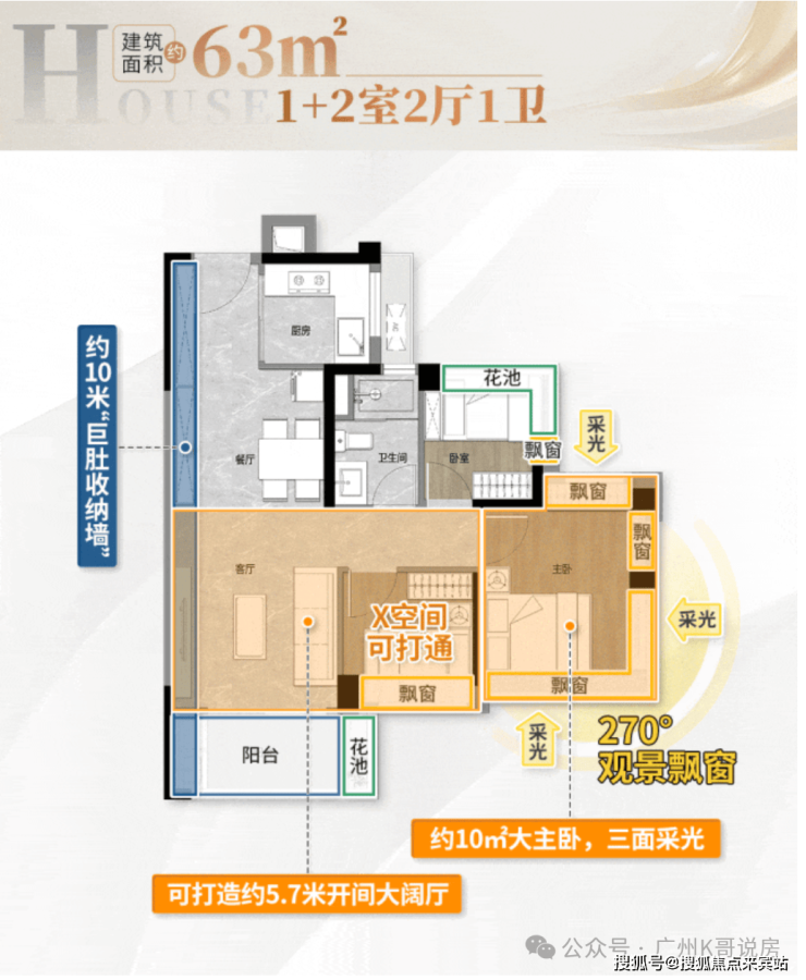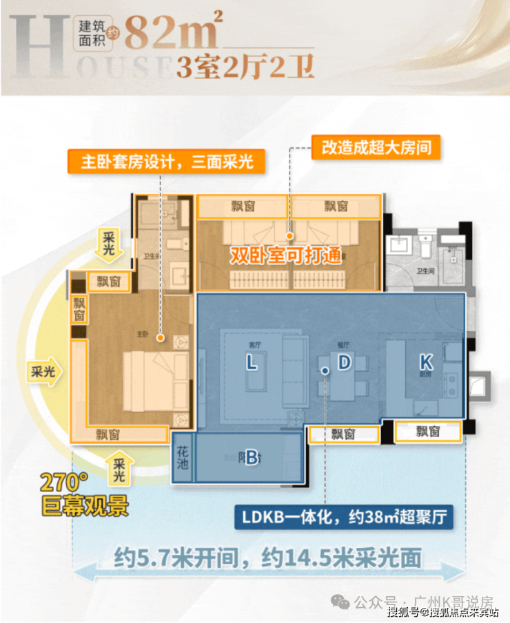 ②南北对流,LDKB一体化设计,动区空间足够大