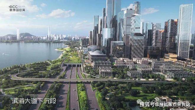 深超总拥有海、湖、湿地、公园、高尔夫五重稀缺生态资源,通过中央绿轴打造"超级校园"生态模式。滨海大道下沉,将释放约10万平方米地面空间,无缝连接深圳湾公园,形成连续的滨海公共空间。中央绿轴地下空间面积约30万平方米,投资95亿元,将建成连接地下枢纽与地面生态的超级系统。这种设计使深超总成为高密度城市环境下生态融合的典范,实现"在城市中漫步自然,在自然中享受城市"。
