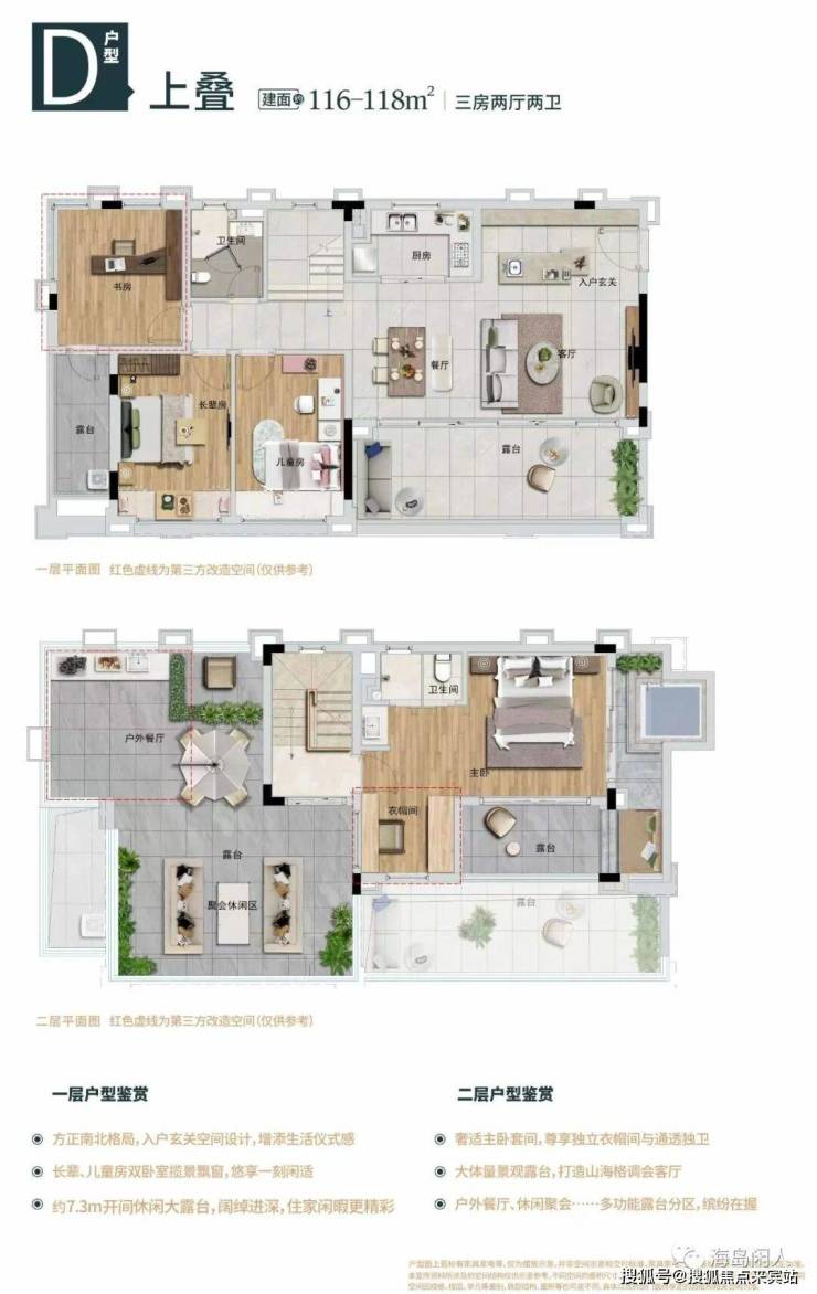 上叠:建筑面积约116-118㎡三房两厅两卫