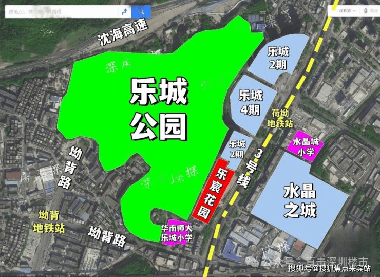 乐宸花园,位于深圳市龙岗区园山街道龙岗大道与坳背路交汇处北侧,地处龙岗大运新城核心地段 。大运新城是深圳市六大"城市新客厅"之一,承担着国际商务中心、国际教育中心、创新枢纽中心、创新研发中心和文体文化中心五大核心功能 。作为深圳东部CBD的核心区域,大运新城享有约1.4万亿东进战略的重资投入,是深圳城市发展"第三极"的重要组成部分。