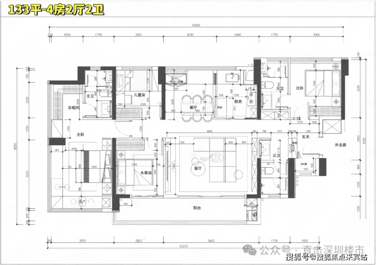 133㎡的4房2厅2卫,设计的是竖厅南北通透格局,进门入户玄关,客厅5.4米开间,餐客厅分离设计,分别做到了主卧24.5㎡/次卧10.2㎡/次卧8.96㎡/次卧7.84㎡(实测面积),客厅连接次卧出12.3m²的观景大阳台,L型中式+岛台灵动式厨房,公卫三段式干湿分离,得房率约78.27%(不含赠送),阳台主朝东南或西南向。靓点:超大客餐厅南北对流+8.2米长超大观景南向阳台,超大主卧+270°无柱转角飘窗+进门独立玄关800库。