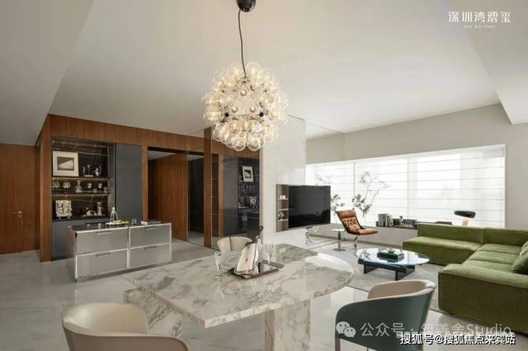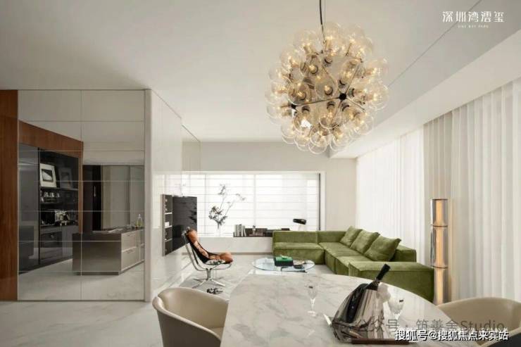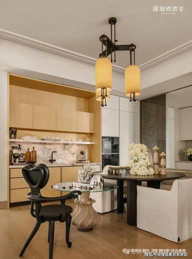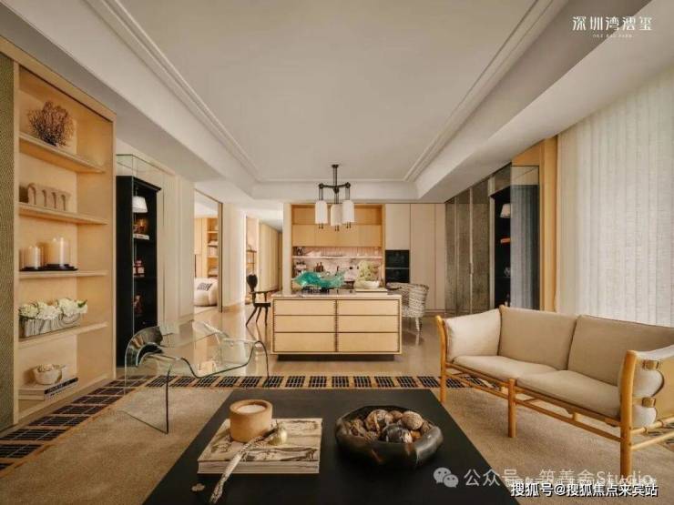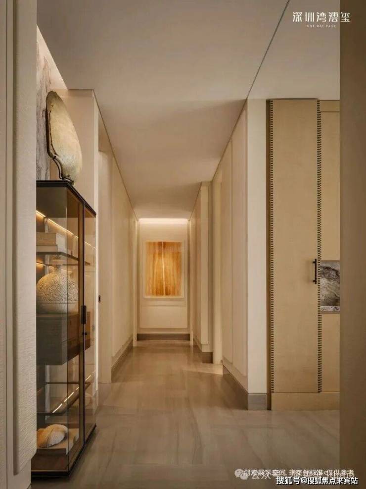 296㎡样板间(CCD设计),现代极简奢雅,以浅色调为基底,搭配天然石材、哑光金属与温润木饰面,践行“少即是多”的设计理念。无主灯的间接照明设计,弱化了空间的厚重感,营造出宁静而高级的氛围,而大面积落地窗与玻璃幕墙,将窗外的深圳湾海景引入室内,让海景成为空间的“流动背景墙”,简约却不简单。