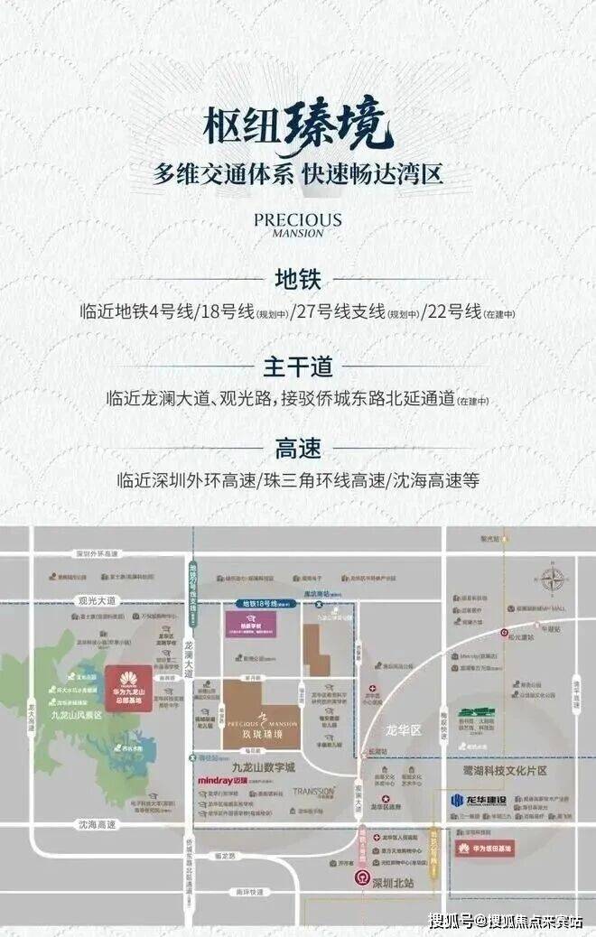 玖珑瑧境是由龙华建设倾力打造的位于龙华中轴线、华为九龙山总部基地旁约136万㎡大城,项目隶属九龙山数字城板块,是深圳市级功能中心的重要组成成分,与北站国际商务中心形成龙华南北“双中心"相呼应格局。