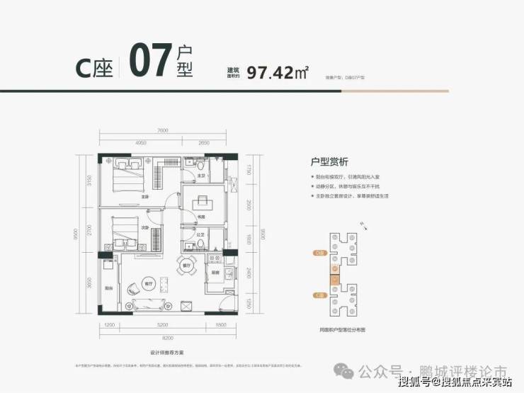 🏡C07户型:约97㎡改善级舒适大三房户型