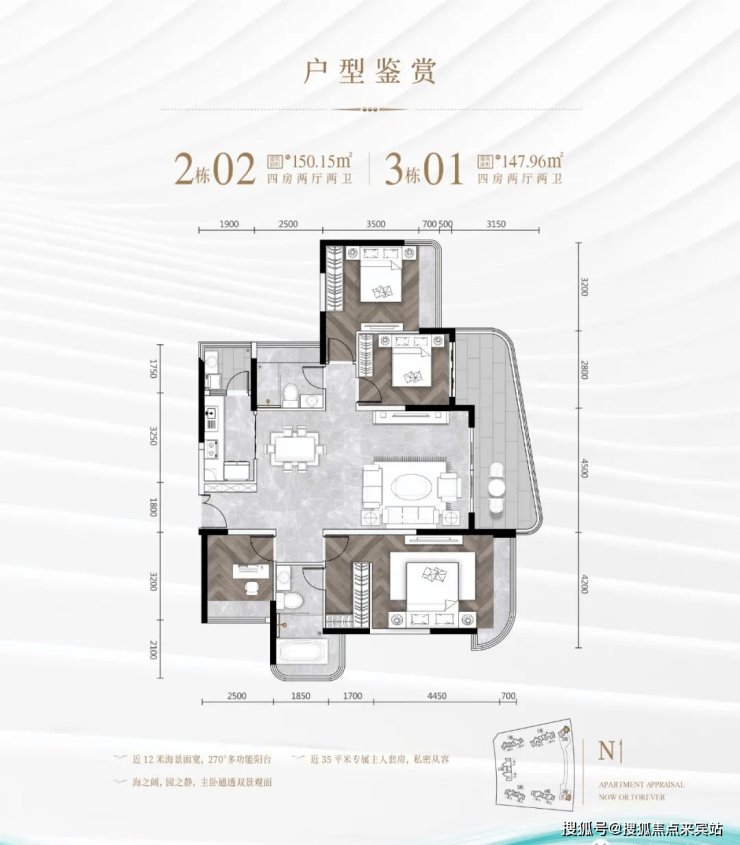打造理想人居,户户朝南,纯270°看海,景观面阔达近13米,卧室转角飘窗,美景尽藏