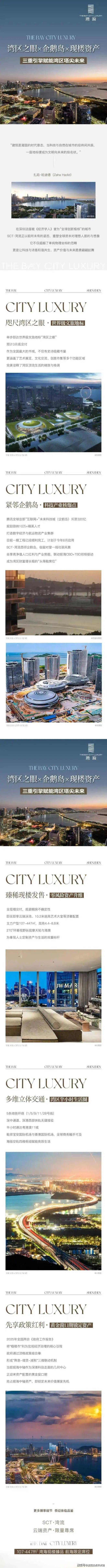 SCT·湾流下楼即达“深圳版千禧公园”滨海文化公园,与欢乐港湾等众多文化场所近乎“零距离”,将前海湾绿肺化作“庭院后花园”,千亿城市配套变为“社区游乐场”。其周边有世界级酒店群,与前海JW万豪等五星级酒店相邻,吃喝玩乐游娱住一应俱全,尽显尊崇。