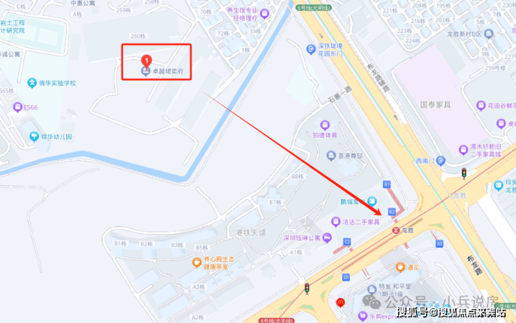 卓越珺奕府距离地铁4号线龙胜地铁站600米左右,位置有点尴尬,既蹭不上龙华中心区,也蹭不上龙华上塘。