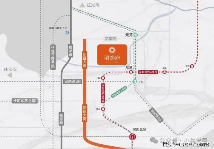 【城市之心 鼎立时代潮头】[发展核]:根据“十四五”规划,龙华定位为粤港澳大湾区国际化创新型中轴新城。卓越·珺奕府立于大湾区广深港中轴线,享湾区发展、北站超核国际商务区、国家级超级商圈等多重发展利好,位踞龙华中央居住活力区、红山辐射生活圈,都心生活从此不凡。[居住芯]:集萃卓越、华润、中海、金茂等多家品质开发商合著,近千万方旧改,城市焕新蝶变。[交通] 龙华-福田-南山构建超级黄金三角,出行更高效