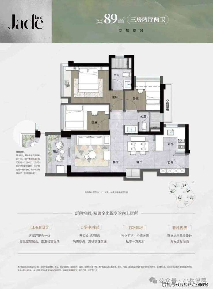 80平或89平,每个房间的空间都足够,阳台虽然不大但是够用,刚需家庭买真的不错。