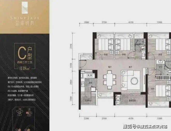 盛璟润府,总占地面积约1.79万㎡,总建筑面积约13万㎡,计容建筑面积约10.2万㎡,容积率4.85,绿化率25%,共由4栋总高45F的住宅组成,分别是2栋A/B/C/D座,还规划有1所幼儿园。