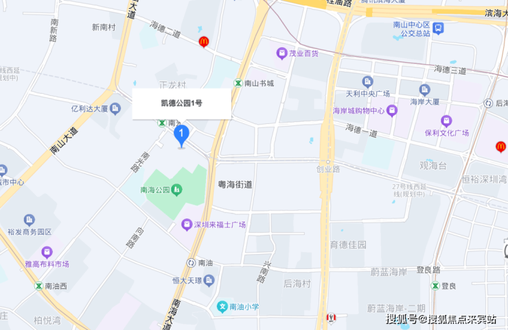 凯德公园一号位于深圳市南山区后海核心板块,地处南山中心与深圳湾之间的黄金交汇点,地理位置优越,交通与生活配套极为便利。项目紧邻南光地铁站与南山书城地铁站(双地铁覆盖),可快速通达全市主要商务与居住区域,日常通勤高效便捷。