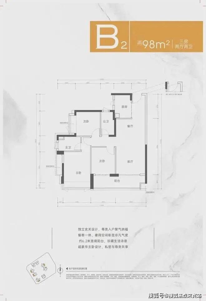 95㎡三房:竖厅设计,6.2米景观阳台,U型厨房+干湿分离卫浴,总价395万起,适合年轻家庭。