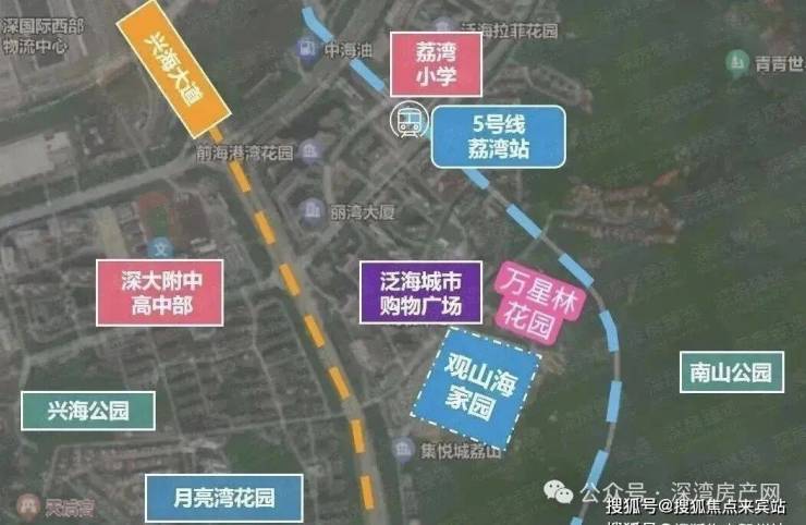万星林花园位于南山街道兴海大道东侧,距离5号线荔湾站500米,毗邻大南山,靠近妈湾片区和蛇口片区,隔壁就是刚开盘在售的《观山海家园》