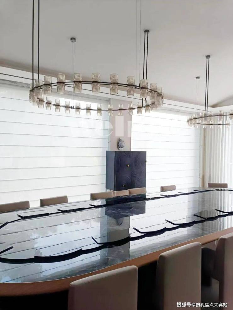 在别墅的餐厅与客厅区域,伟业窗饰选择了更具层次感的电动罗马帘。这种将古典褶皱美学与现代智能技术完美结合的设计,为龙溪悦墅的私密空间增添了独特的优雅气质。