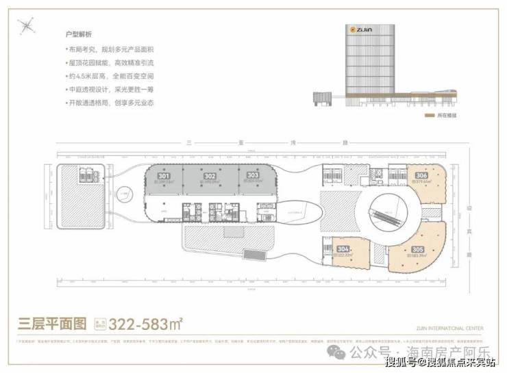 凤凰海岸单元——三亚中央商务区核芯片区,定位为旅游港自贸服务与邮轮、游艇、文化艺术综合消费区。紫金国际中心落位于此,匠造建面约6万㎡国际总部基地,实现区域城市服务、旅游文化、总部经济等产业资源全覆盖。