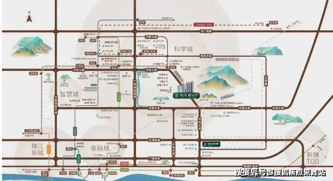 项目以“半山栖居”为理念,北倚湖麻山,南望大公山和创新公园。稍微远一点,2.5公里之外还有羊城八景之一的香雪公园。