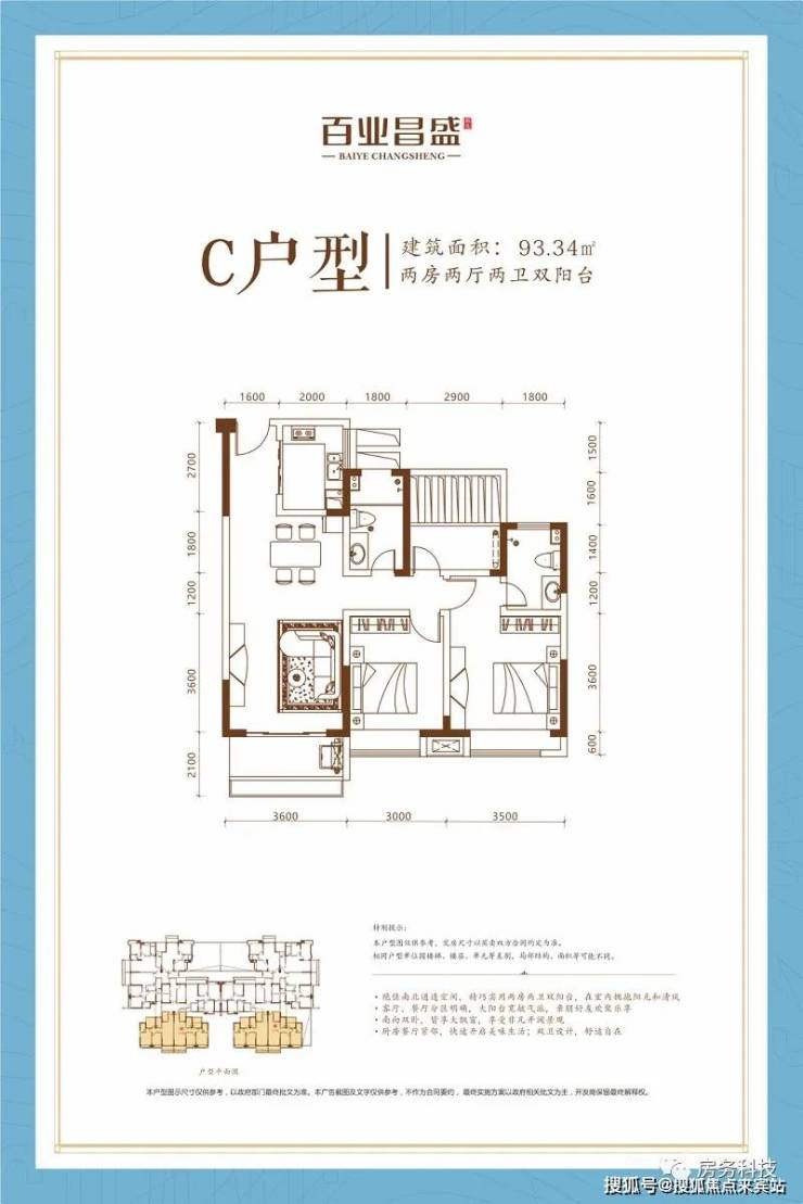 C户型 两房两厅两卫 建筑面积93.34㎡