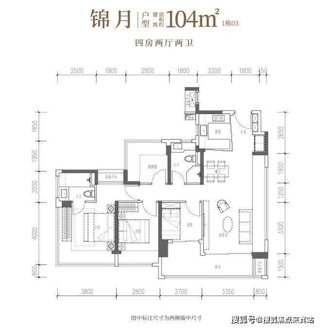 建面约104㎡4房2卫