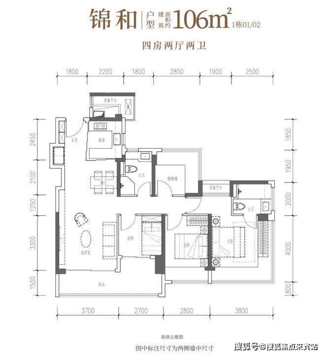 建面约107㎡4房2卫